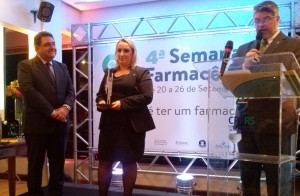 A farmacêutica da FUMSSAR, Luciana Legg, recebem o Prêmio Sérgio Lamb 2015, na categoria Saúde Pública, no encerramento da 4ª...