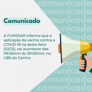 A FUMSSAR informa que a aplicação da vacina contra a COVID-19 na sexta-feira (02/12), vai acontecer das 13h30min às 15h30min,...