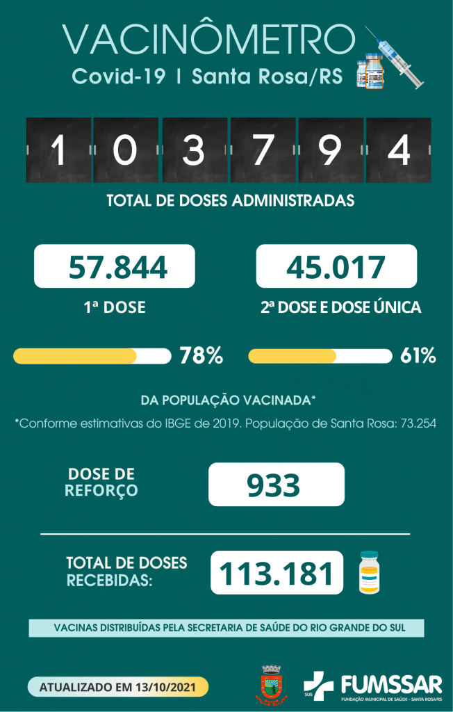 COVID-19 Notícias Vacinômetro COVID-19 Vacinômetro COVID-19 13 de outubro de 2021 Continue Reading Previous Vacinômetro COVID-19Next UBS Planalto conta com equipe de Residência Multiprofissional