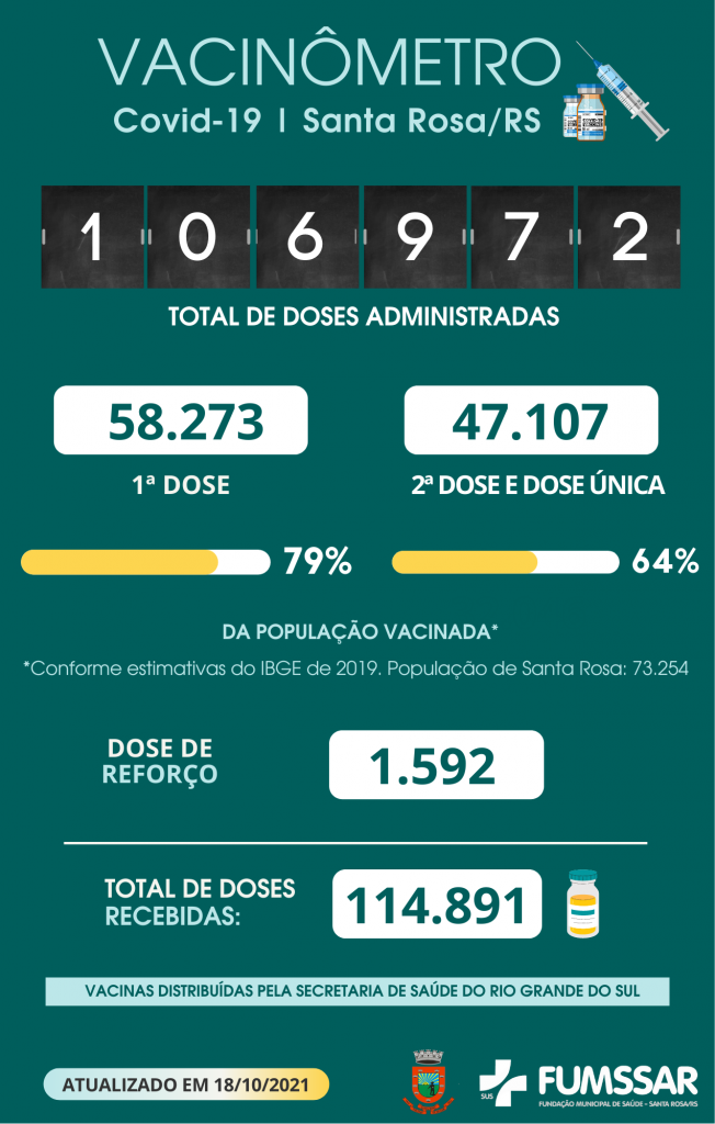 COVID-19 Notícias Vacinômetro COVID-19 Vacinômetro COVID-19 18 de outubro de 2021 Continue Reading Previous FUMSSAR realiza campanha de MultivacinaçãoNext BOLETIM COVID-19