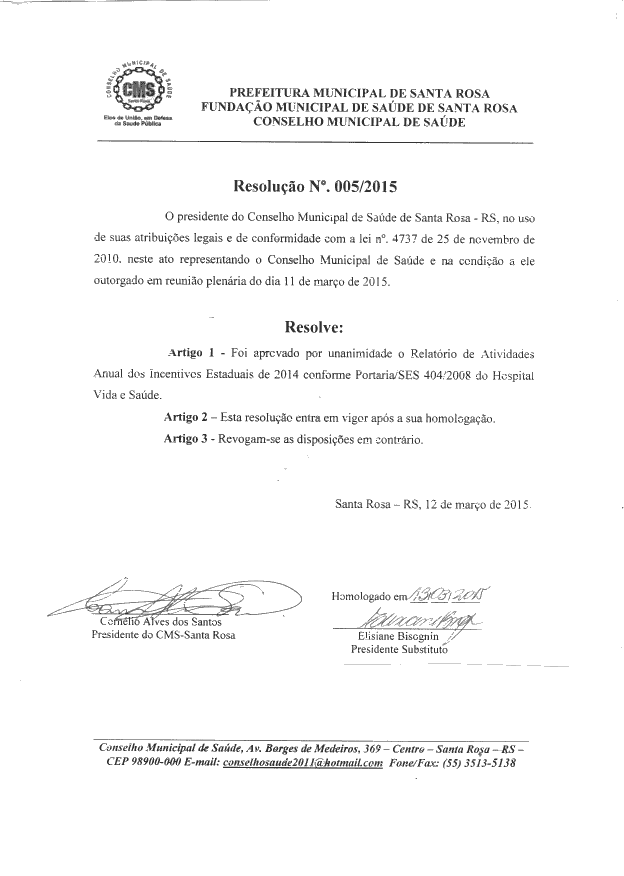 Conselho Municipal de Saúde > Resoluções Resolução 005/2015 19 de março de 2015 0 Continue Reading Previous Prioridades de abrangência Macrorregional a partir da Plenária de Santa Rosa 2013.Next Resolução 06/2015 CMS Deixe um comentário Cancelar respostaO seu endereço de e-mail não será publicado. Campos obrigatórios são marcados com *Comentário * Nome * E-mail * Site
