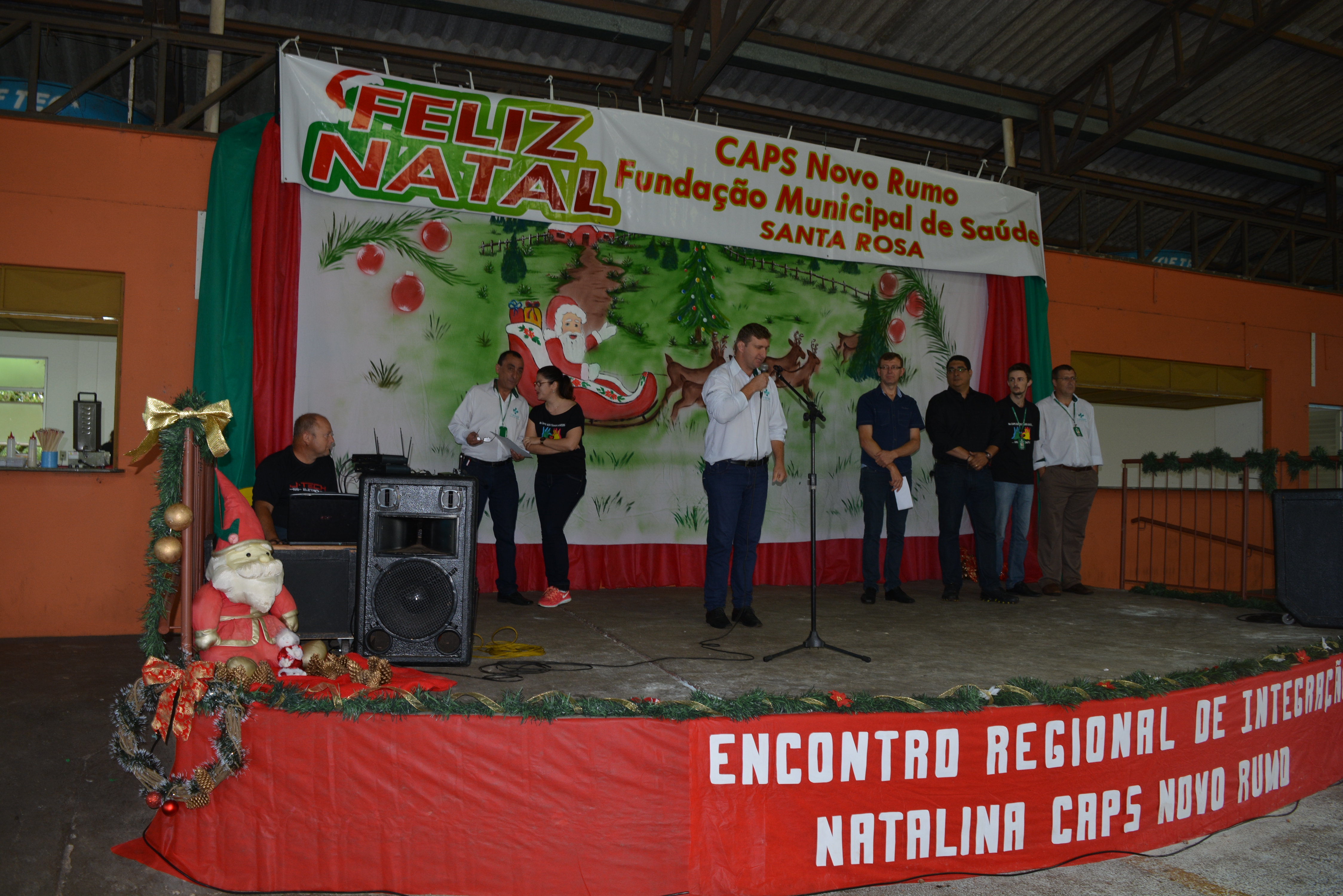 Santa Rosa sediou na quinta – feira, 03, o VII Encontro Regional Natalino dos CAPS. O Encontro reuniu Usuários de diversos municípios da região, profissionais e lideranças em um encontro festivo realizado no Parque de Exposições. Os integrantes dos CAPS, de Santa Rosa recepcionaram as diversas caravanas embaladas pela Banda Municipal. Diversas atividades foram realizadas durante todo o dia num ambiente fraterno com muita descontração. A coordenadora do CAPS Adriane Alpe, saudou a presença de todos destacando a importância do encontro que promove a integração dos participantes , bem como serve com instrumentos para a troca de experiências entre os municípios. O presidente em exercício da FUMSSAR, Aldair Melchior parabenizou aos organizadores, destacando que o trabalho que é realizado pelo CAPS, tem se destacado fruto dos esforços mútuos dos profissionais, e o evento demonstra a boa relação existente entre usuários e trabalhadores da saúde envolvidos com a causa nobre que o tratamento e recuperação das pessoas. “ Os servidores do CAPS e outros envolvidos são muito dedicados com a causa tão nobre no tratamento e recuperação de usuários” frisou Aldair.