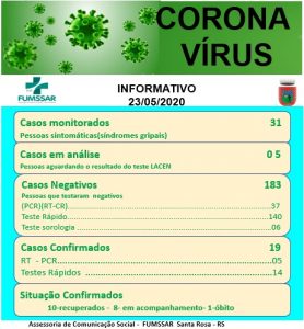 BOLETIM ATUALIZADO COVID-19. 23/5/2020.