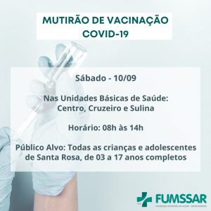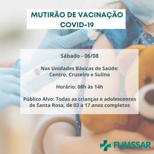 A Fundação Municipal de Saúde de Santa Rosa vai realizar no sábado (06), um mutirão de vacinação contra a COVID-19....