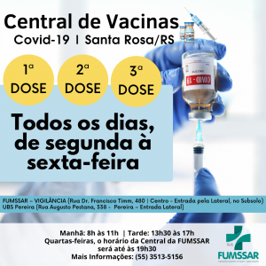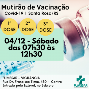 A Fundação Municipal de Saúde de Santa Rosa informa que neste sábado (04), vai ser realizado um mutirão de vacinação...