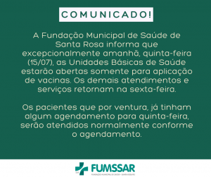 A Fundação Municipal de Saúde de Santa Rosa informa que as pessoas que já receberam a primeira dose da vacina...