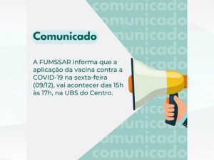 A FUMSSAR informa a população que a vacinação contra a COVID-19, na sexta-feira (09), vai acontecer das 15h às 17h,...