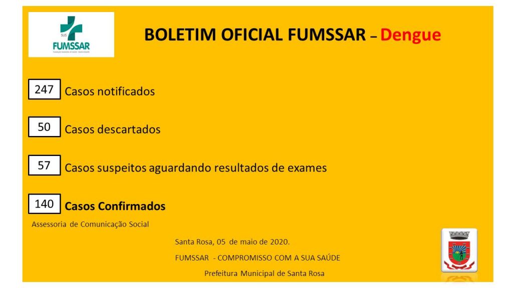 Notícias Boletim oficial de casos de Dengue-05 /05/2020 5 de maio de 2020 0 Continue Reading Previous NOTA DE RECOMENDAÇÃO QUANTO AO USO DE MÁSCARASNext Boletim de casos de síndromes gripais em Santa Rosa-07/05/2020. Deixe um comentário Cancelar respostaO seu endereço de e-mail não será publicado. Campos obrigatórios são marcados com *Comentário * Nome * E-mail * Site