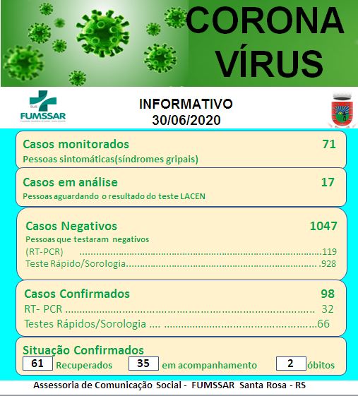Boletim - NOVO Coronavírus (COVID-19) BOLETIM ATUALIZADO COVID-19- 30/6/2020 30 de junho de 2020 0 Continue Reading Previous BOLETIM COVID-19-25/6/2020Next BOLETIM COVID -19 -01/07/2020 Deixe um comentário Cancelar respostaO seu endereço de e-mail não será publicado. Campos obrigatórios são marcados com *Comentário * Nome * E-mail * Site