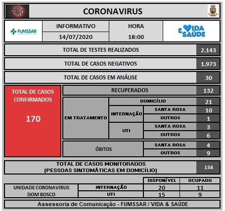 Boletim - NOVO Coronavírus (COVID-19) Boletim atualizado COVID-19 14 de julho de 2020 0 Continue Reading Previous BOLETIM CORONAVÍRUS-07/7/2020Next BOLETIM ATUALIZADO COVID-19 -17/7/2020 Deixe um comentário Cancelar respostaO seu endereço de e-mail não será publicado. Campos obrigatórios são marcados com *Comentário * Nome * E-mail * Site