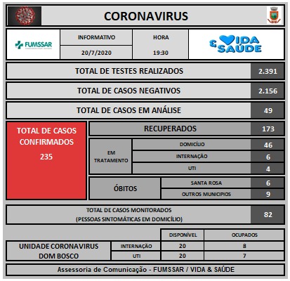 Boletim - NOVO Coronavírus (COVID-19) BOLETIM ATUALIZADO COVID-19- 20/7/2020 20 de julho de 2020 0 Continue Reading Previous BOLETIM ATUALIZADO COVID-19 -17/7/2020Next BOLETIM 22/7/2020 Deixe um comentário Cancelar respostaO seu endereço de e-mail não será publicado. Campos obrigatórios são marcados com *Comentário * Nome * E-mail * Site