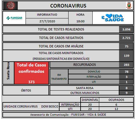 Boletim - NOVO Coronavírus (COVID-19) BOLETIM ATUALIZADO COVID-19 DATA-27/7/2020 27 de julho de 2020 0 Continue Reading Previous BOLETIM 24/7/2020Next BOLETIM COVID-19- 28/7/2020 Deixe um comentário Cancelar respostaO seu endereço de e-mail não será publicado. Campos obrigatórios são marcados com *Comentário * Nome * E-mail * Site