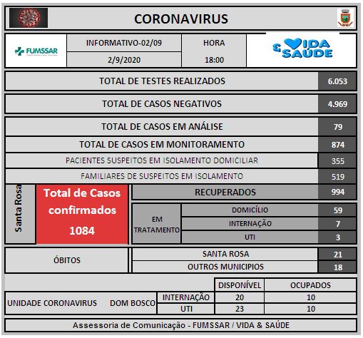 Boletim - NOVO Coronavírus (COVID-19) BOLETIM 02/9/2020 2 de setembro de 2020 0 Continue Reading Previous Boletim Covid-19 : 31/8/2020Next Boletim COVID-19 -08/9/2020 Deixe um comentário Cancelar respostaO seu endereço de e-mail não será publicado. Campos obrigatórios são marcados com *Comentário * Nome * E-mail * Site