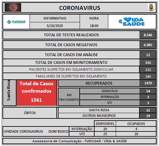 Boletim - NOVO Coronavírus (COVID-19) BOLETIM 05/10/2020 5 de outubro de 2020 0 Continue Reading Previous BOLETIM COVID-19Next Boletim COVID 08/10/2020 Deixe um comentário Cancelar respostaO seu endereço de e-mail não será publicado. Campos obrigatórios são marcados com *Comentário * Nome * E-mail * Site