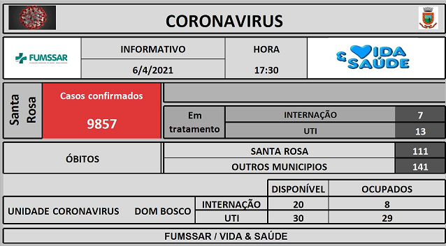 Boletim - NOVO Coronavírus (COVID-19) Notícias BOLETIM COVID 6 de abril de 2021 Continue Reading Previous Boletim Covid-19Next BOLETIM COVID
