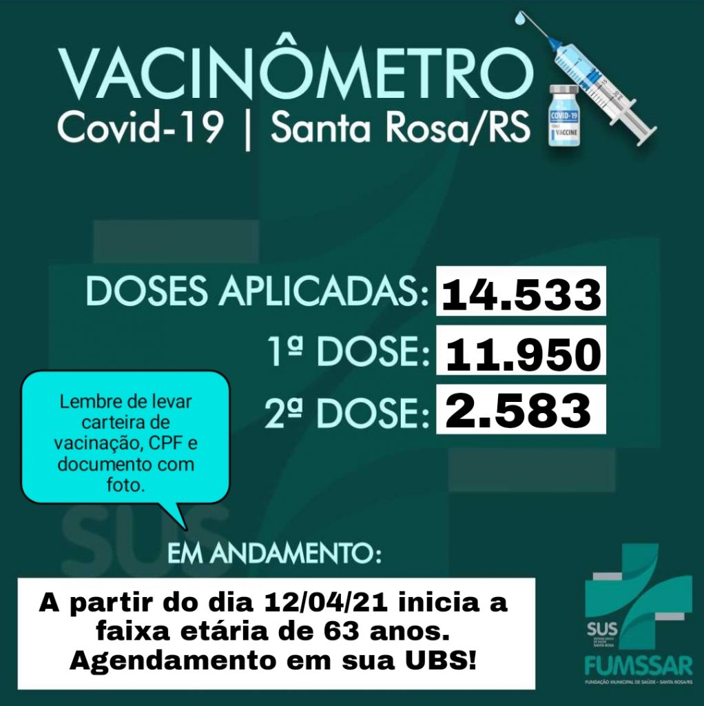 COVID-19 Notícias Vacinômetro Covid-19 11 de abril de 2021 OBS: Doses serão aplicadas conforme quantitativo recebido pelo Estado. Continue Reading Previous Boletim Epidemiológico Covid – FumssarNext Boletim Covid-19