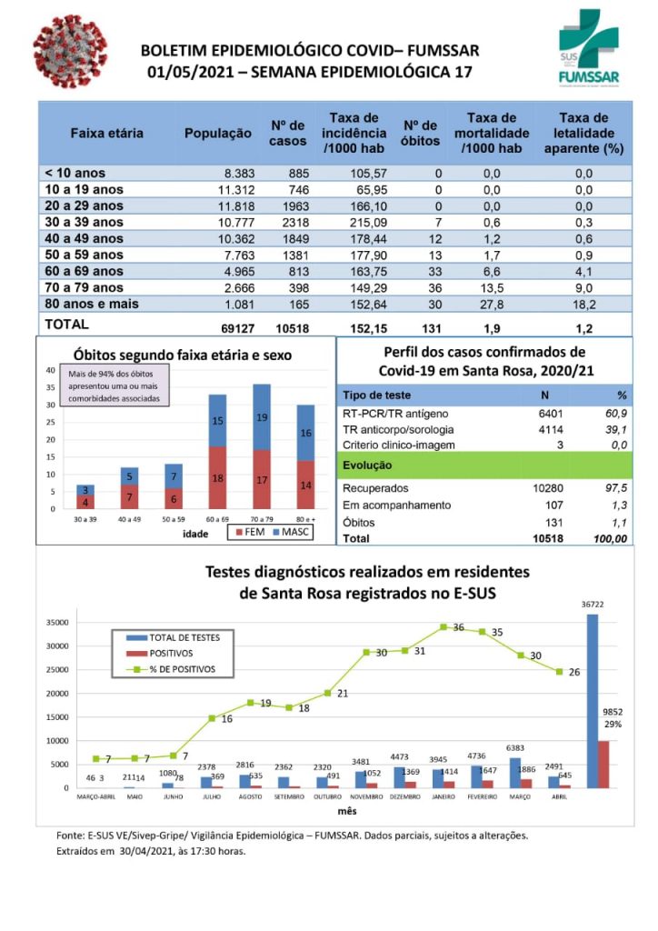 Boletim - NOVO Coronavírus (COVID-19) COVID-19 Notícias Boletim Epidemiológico Covid – Fumssar 1 de maio de 2021 Continue Reading Previous Feliz Dia do Trabalhador!Next Vacinômetro – Covid – 19