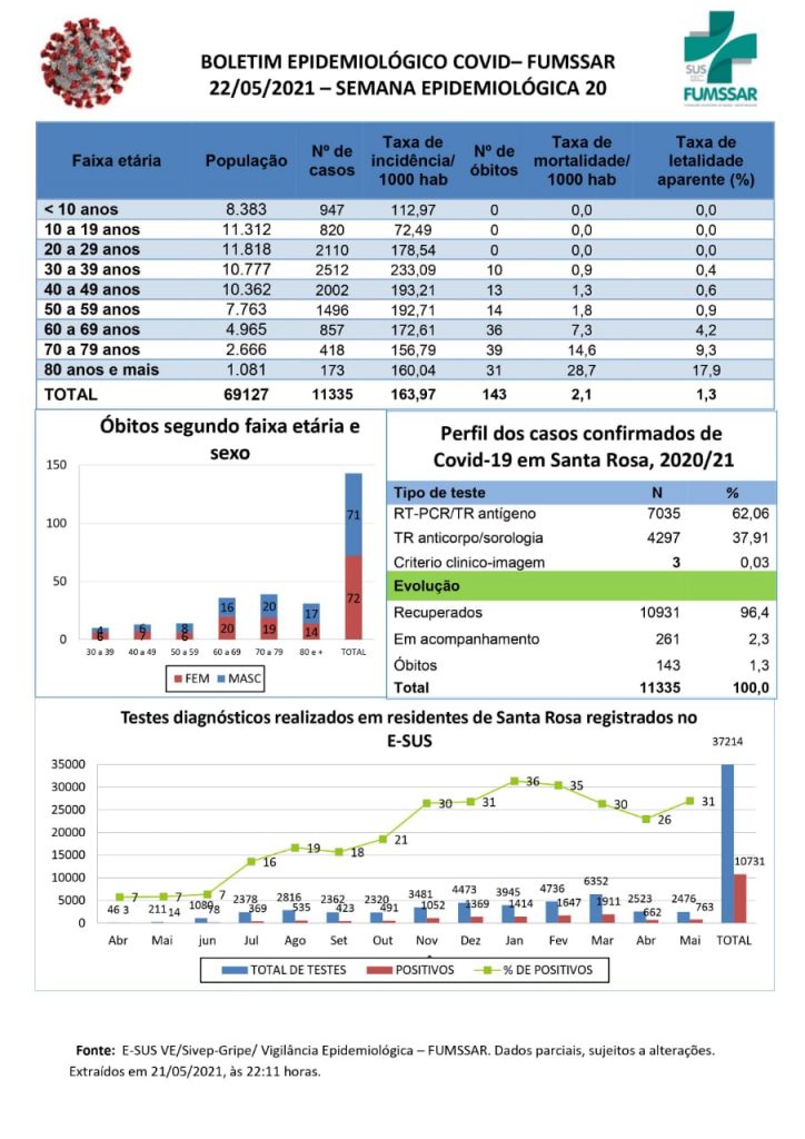 Boletim - NOVO Coronavírus (COVID-19) COVID-19 Notícias Boletim Epidemiológico Covid-Fumssar 22 de maio de 2021 Continue Reading Previous BOLETIM COVID-19Next Vacinômetro COVID-19
