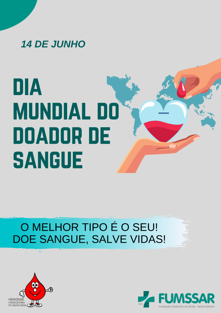 Notícias DIA MUNDIAL DO DOADOR DE SANGUE 14 de junho de 2021 HEMOSAR – HEMOCENTRO SANTA ROSA – (55) 3513-5140 Continue Reading Previous VACINAÇÃO COVID-19 – NOVA FAIXA ETÁRIANext BOLETIM COVID-19