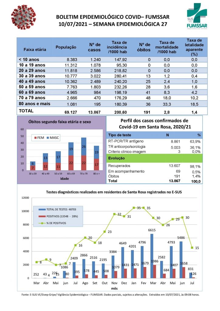 Boletim - NOVO Coronavírus (COVID-19) COVID-19 Notícias Boletim Epidemiológico COVID-19 10 de julho de 2021 Continue Reading Previous PROCESSO SELETIVO SIMPLIFICADO 03/2021 – CONTRATAÇÃO DE MÉDICO CLINICO GERAL IIINext Vacinômetro COVID-19