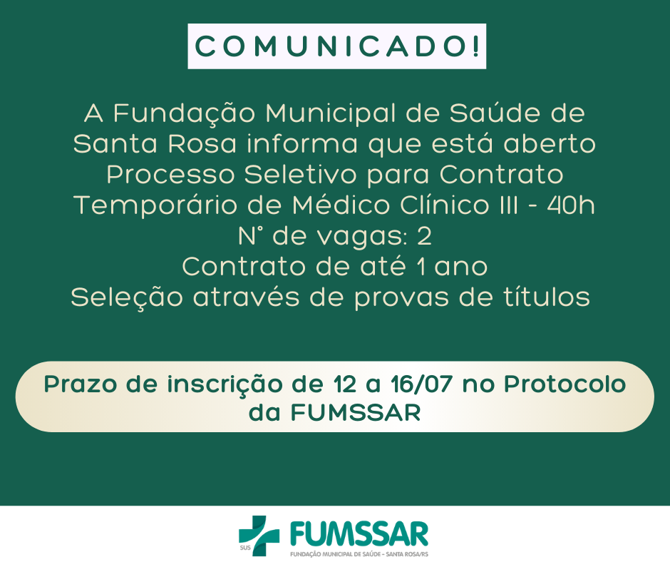 Notícias Aberto Processo Seletivo para Contratação de Médico 13 de julho de 2021 Continue Reading Previous BOLETIM COVID-19Next Comunicado!