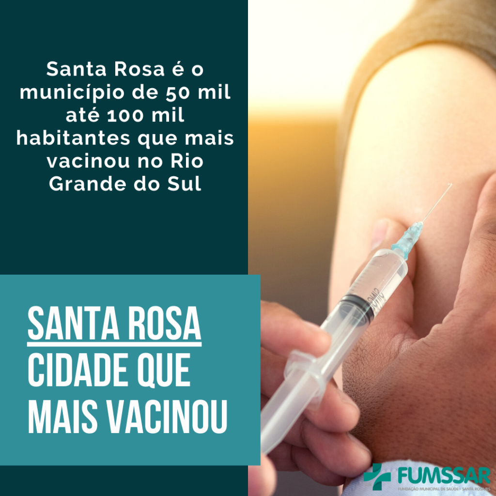 Notícias Parabéns Santa Rosa! 20 de julho de 2021 Parabéns a toda equipe FUMSSAR! Continue Reading Previous Santa Rosa terá Centro Macrorregional de Referência em AutismoNext Santa Rosa é a cidade até 100 mil habitantes que mais vacinou no RS