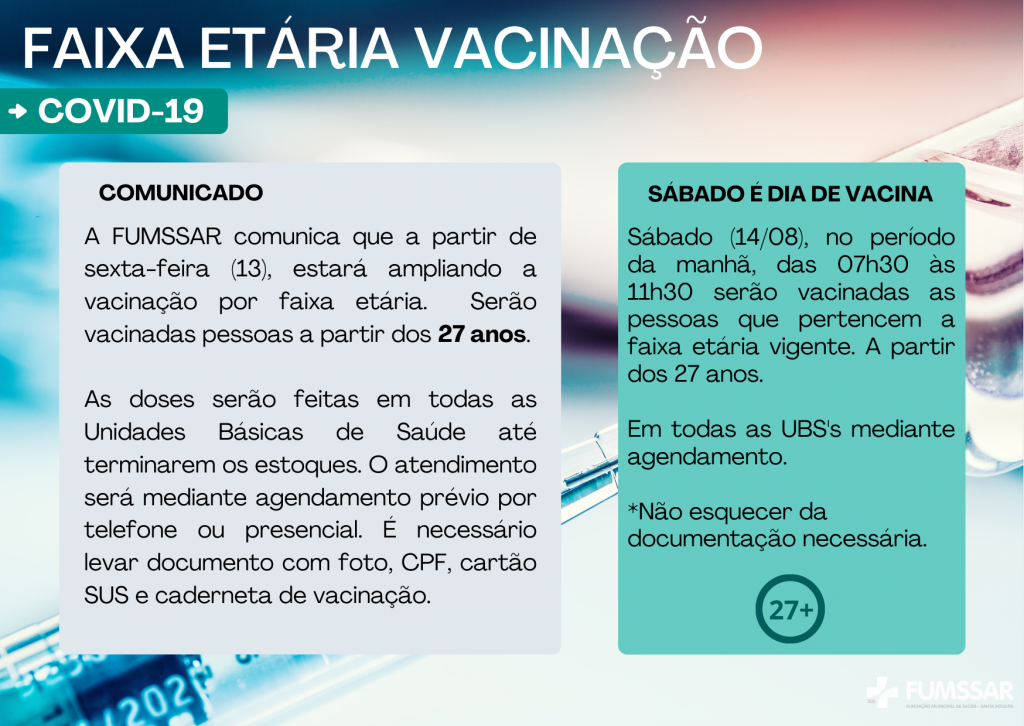 COVID-19 Notícias Nova Faixa Etária Vacinação COVID-19 12 de agosto de 2021 Continue Reading Previous BOLETIM COVID-19Next BOLETIM COVID-19