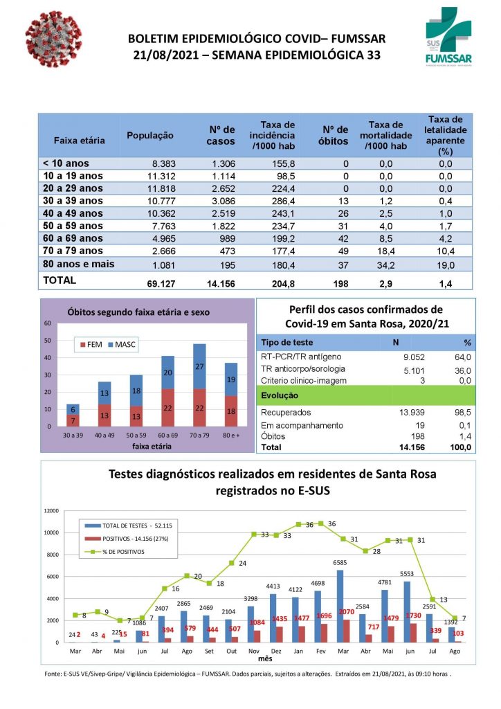 Boletim - NOVO Coronavírus (COVID-19) COVID-19 Notícias Boletim Epidemiológico 21 de agosto de 2021 Continue Reading Previous Boletim Covid-19Next Vacinômetro COVID-19