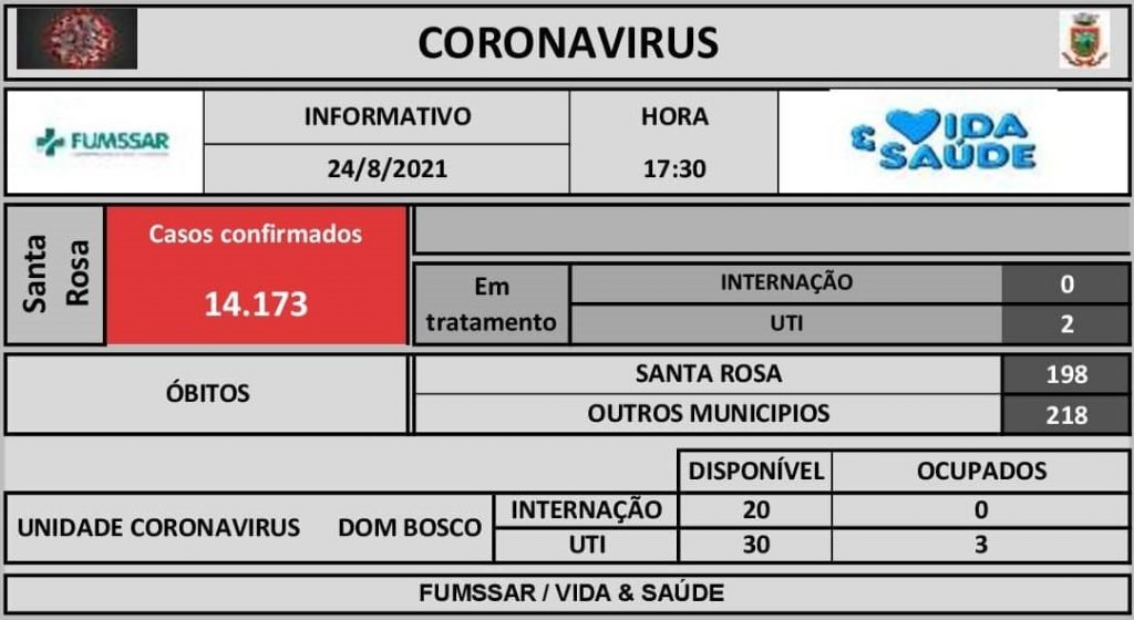 Boletim - NOVO Coronavírus (COVID-19) Notícias Boletim Covid-19 24 de agosto de 2021 Continue Reading Previous Boletim Covid-19Next Vacinômetro COVID-19