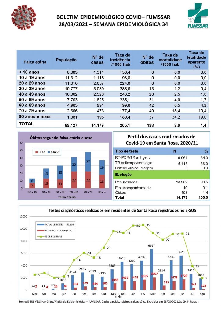 Boletim - NOVO Coronavírus (COVID-19) COVID-19 Notícias Boletim Epidemiológico 28 de agosto de 2021 Continue Reading Previous Boletim Covid-19Next Vacinômetro COVID-19