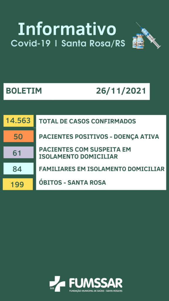 Boletim - NOVO Coronavírus (COVID-19) COVID-19 Notícias Boletim COVID-19 26 de novembro de 2021 Continue Reading Previous Vacinômetro – COVID-19Next Vacinômetro COVID-19