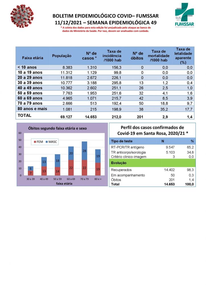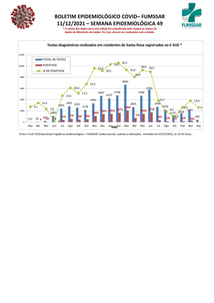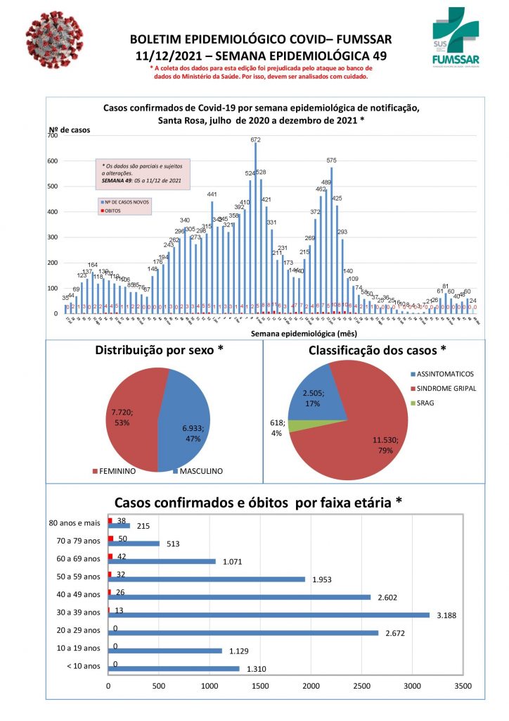 Boletim - NOVO Coronavírus (COVID-19) COVID-19 Notícias Boletim Epidemiológico 15 de dezembro de 2021 Continue Reading Previous Santa Rosa aplica reforço da vacina Janssen na quarta-feiraNext UBS Agrícola desenvolve grupos de oficinas terapêuticas
