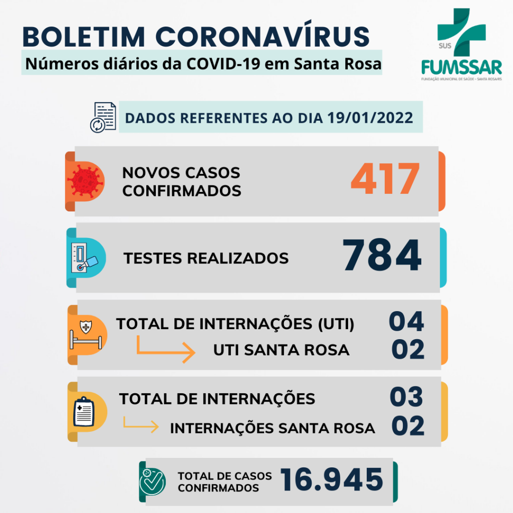 Boletim - NOVO Coronavírus (COVID-19) COVID-19 Notícias Boletim COVID-19 20 de janeiro de 2022 Continue Reading Previous Primeira criança é vacinada contra a COVID-19 em Santa RosaNext Boletim COVID-19