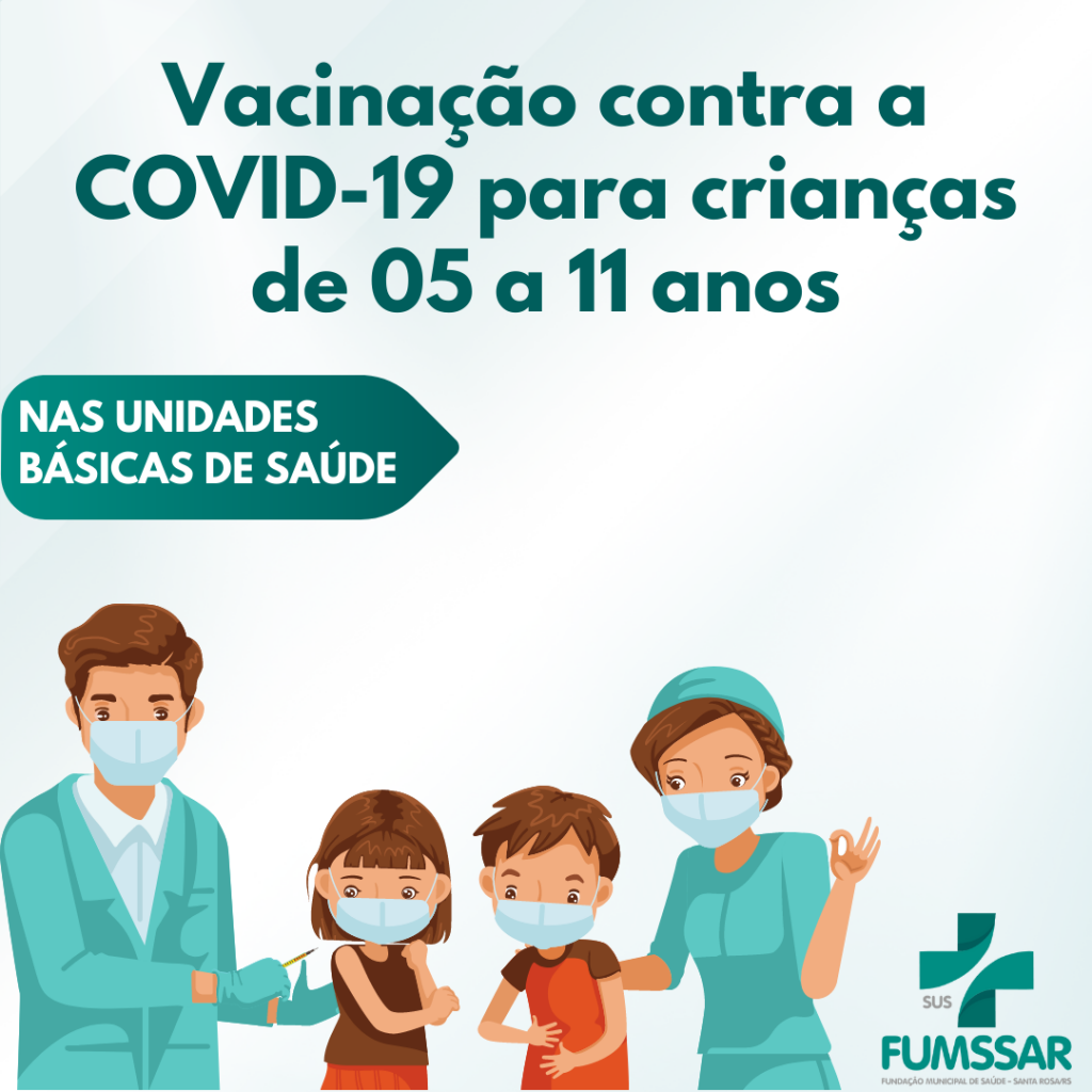 A Fundação Municipal de Saúde de Santa Rosa informa que a partir desta segunda-feira (31), vai ser ampliada a vacinação contra a COVID-19 para crianças. Vão poder realizar a primeira dose, por faixa etária, crianças de 05 a 11 anos. As doses vão ser aplicadas em todas as Unidades Básicas de Saúde, no turno da tarde, de segunda à sexta-feira, das 13h30 às 17h30. Para realizar a aplicação é necessário agendar um horário na UBS de origem. As crianças que forem se vacinar precisam vir acompanhadas dos pais ou responsáveis e levar junto certidão de nascimento, cartão SUS e a caderneta de vacinação.