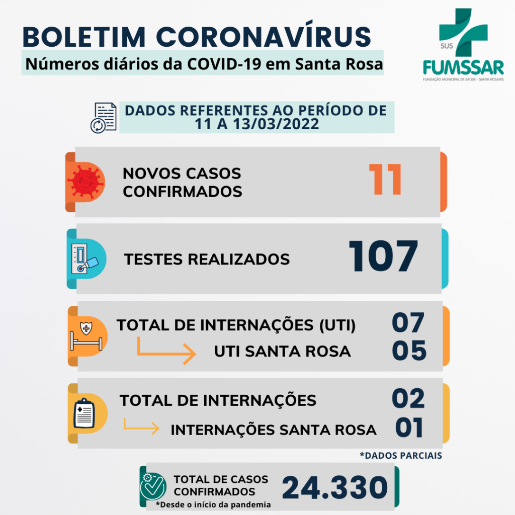Boletim - NOVO Coronavírus (COVID-19) COVID-19 Notícias Boletim – COVID-19 14 de março de 2022 Continue Reading Previous 1ª Conferência Municipal de Saúde Mental foi realizada em Santa RosaNext Uso da Máscara