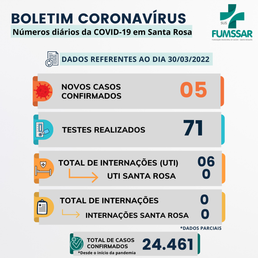Boletim - NOVO Coronavírus (COVID-19) COVID-19 Notícias Boletim – COVID-19 31 de março de 2022 Continue Reading Previous Começa a aplicação da 4ª dose contra a COVID-19 em idososNext Profissionais de saúde da FUMSSAR realizam atividade de qualificação