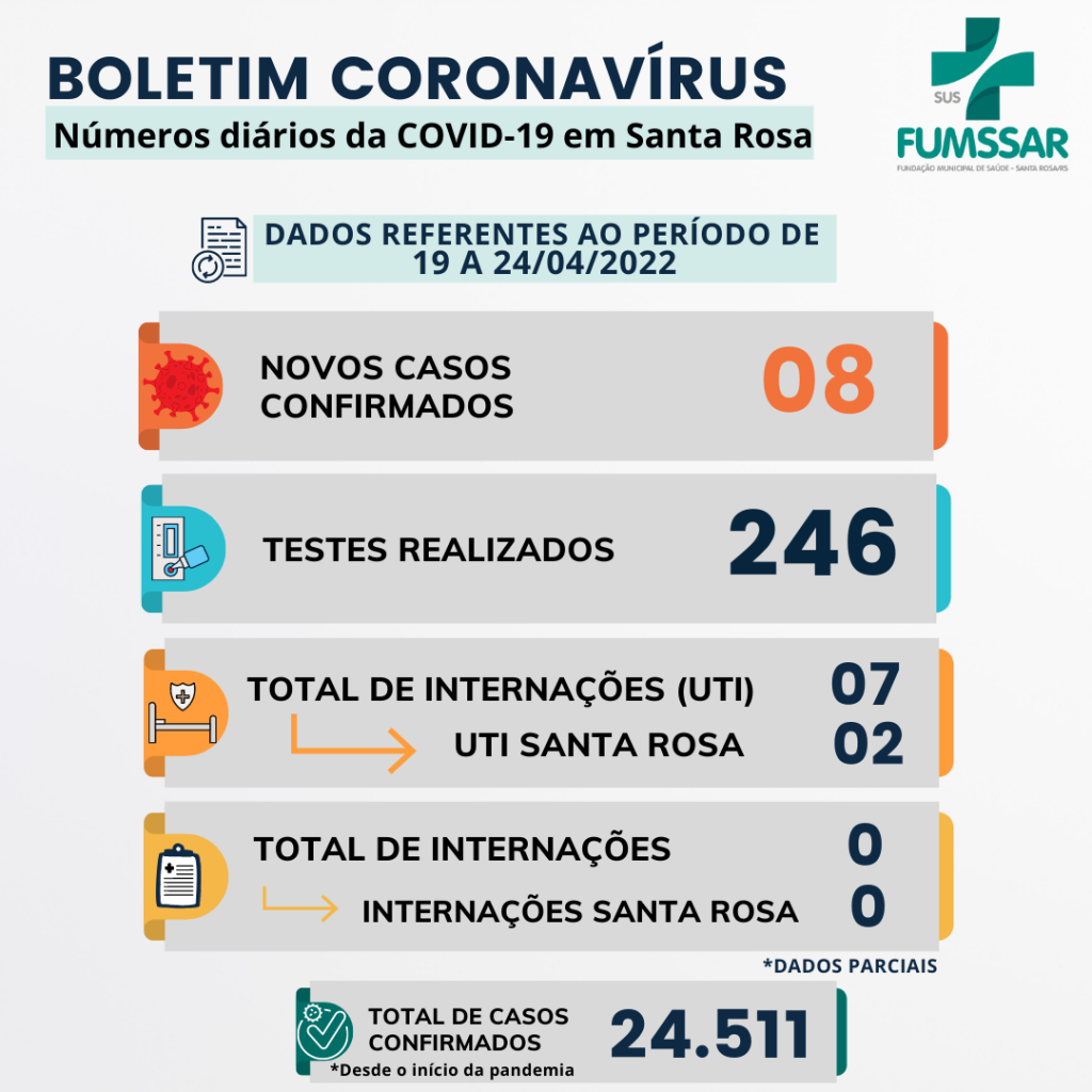 Boletim - NOVO Coronavírus (COVID-19) COVID-19 Notícias Boletim – COVID-19 25 de abril de 2022 Continue Reading Previous Inicia nesta segunda-feira a vacinação contra a Gripe para criançasNext Boletim – Dengue