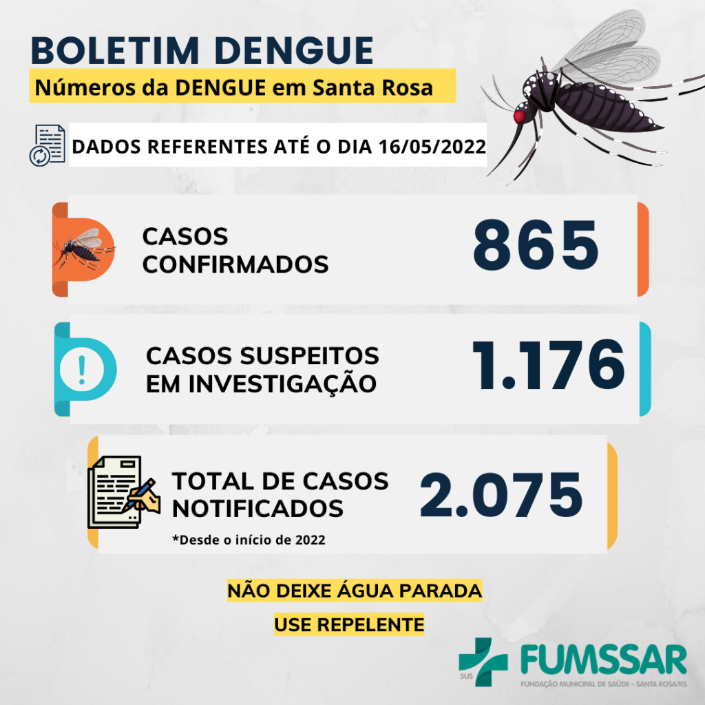 Notícias Boletim – Dengue 16 de maio de 2022 Continue Reading Previous Boletim – COVID-19Next Prefeitura e FUMSSAR realizam integração de novos servidores