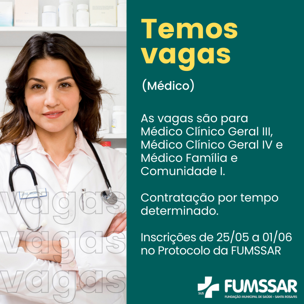 Notícias Temos Vagas 25 de maio de 2022 Continue Reading Previous Boletim – COVID-19Next FUMSSAR disponibiliza o tratamento com Ozonioterapia pelas PICS