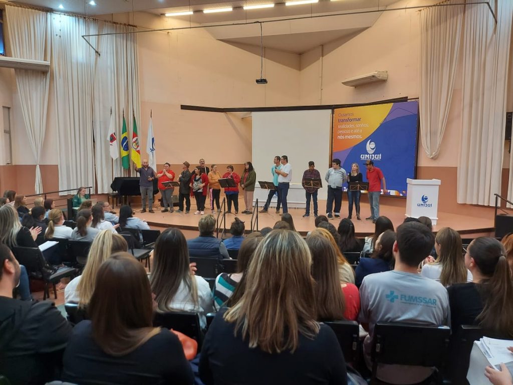 A Fundação Municipal de Saúde de Santa Rosa por meio da equipe do CAPS II – Novo Rumo realizou nesta quarta-feira (25), um evento sobre saúde mental na adolescência. O encontro aconteceu no auditório da UNIJUÍ, com a parceria da Secretaria de Educação e Cultura. Estavam presentes profissionais da saúde e educação. O evento contou com apresentações musicais dos pacientes dos CAPS II e CAPS AD e palestras com o tema: Saúde Mental na Adolescência: precisamos falar sobre isso.