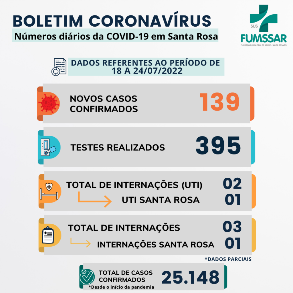 Boletim - NOVO Coronavírus (COVID-19) COVID-19 Notícias Boletim – COVID-19 26 de julho de 2022 Continue Reading Previous PROCESSO SELETIVO SIMPLIFICADO N.º 04/2022Next FUMSSAR disponibiliza Oficinas Terapêuticas nas Unidades Básicas de Saúde