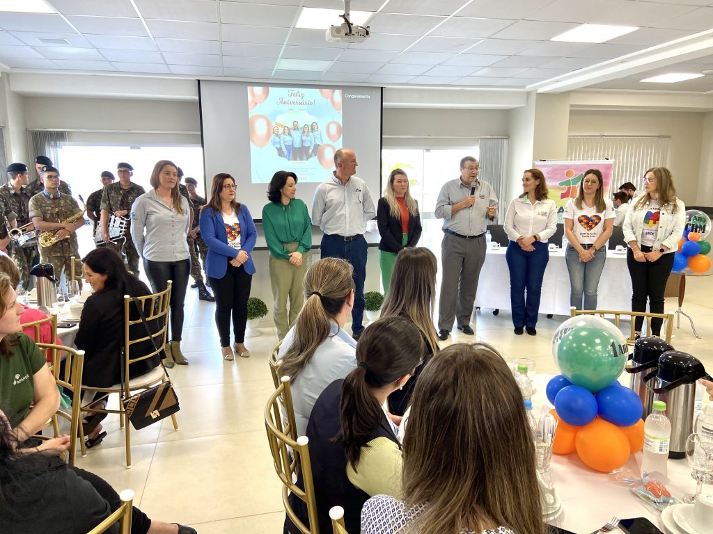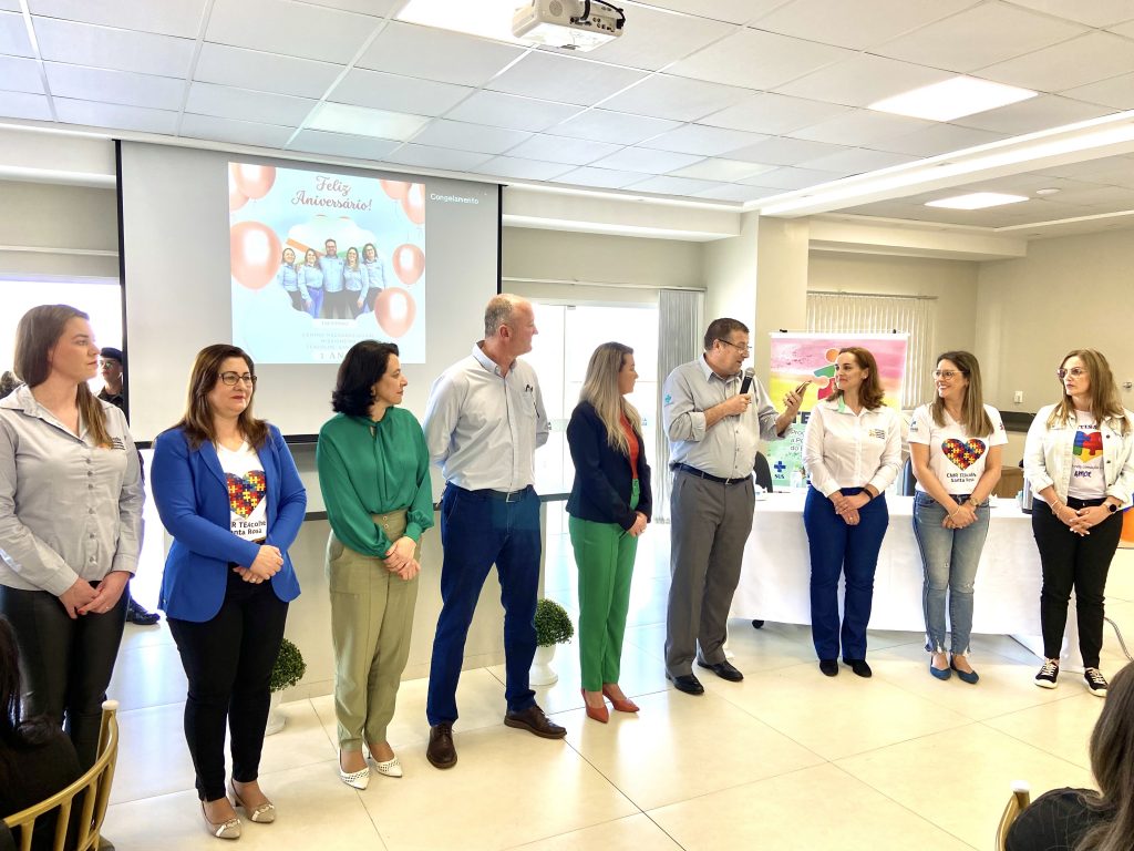 O autismo é um transtorno do neurodesenvolvimento que tem sido cada vez mais frequente na população. Em busca de oferecer um atendimento diferenciado para os autistas, a equipe da Fundação de Saúde de Santa Rosa desenvolveu um projeto e foi contemplada em 2021, com um Centro Macrorregional de Referência em Transtorno do Espectro do Autismo. Nesta quinta-feira (01), foi realizado um evento em comemoração ao primeiro ano do serviço. Estavam presentes autoridades e representantes de instituições e entidades que atendem autistas em toda a Macrorregião de Saúde Missioneira. A cerimônia contou também, com a participação da Banda do Exército e de um bate-papo sobre o TEA – Transtorno do Espectro do Autismo.