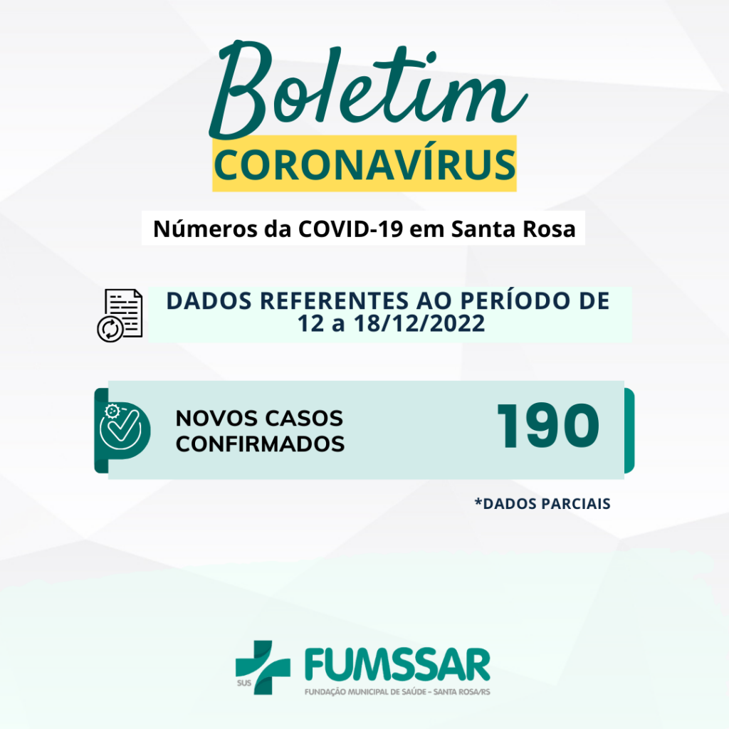 Boletim - NOVO Coronavírus (COVID-19) COVID-19 Notícias Boletim – COVID-19 20 de dezembro de 2022 Continue Reading Previous Quatro Unidades de Saúde oferecem atendimento no 3º turnoNext FUMSSAR divulga cronograma da vacinação COVID-19