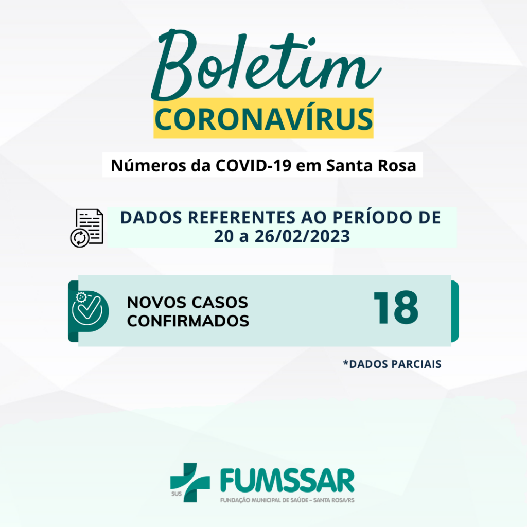 Boletim - NOVO Coronavírus (COVID-19) COVID-19 Notícias Boletim Covid-19 27 de fevereiro de 2023 Continue Reading Previous II Fórum Macrorregional do Transtorno do Espectro Autista acontece nesta segunda-feiraNext II Fórum Macrorregional do Transtorno do Espectro Autista
