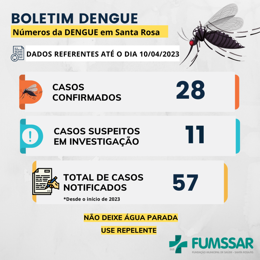 Notícias BOLETIM DENGUE 10 de abril de 2023 Continue Reading Previous III Seminário Estadual do Transtorno do Espectro Autista é realizado em Santa RosaNext BOLETIM COVID-19