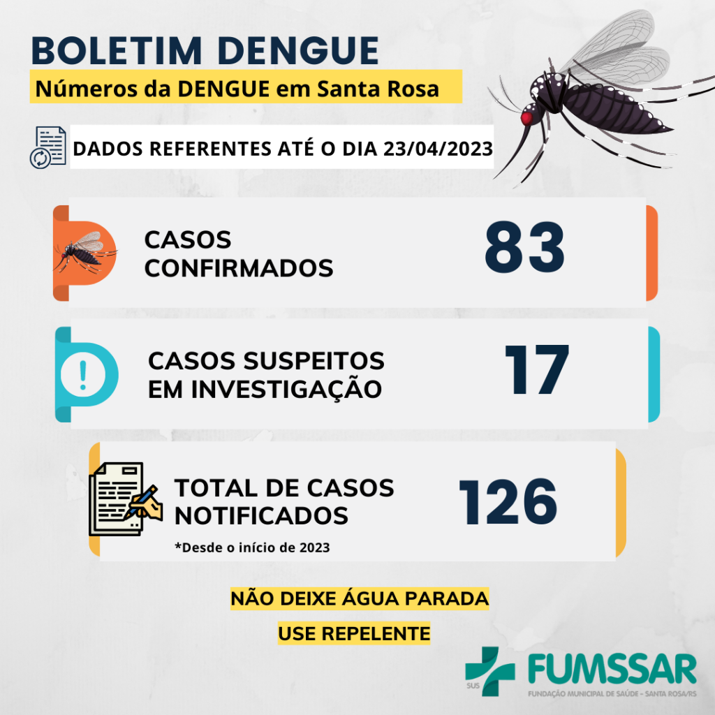 Notícias Boletim Dengue 24 de abril de 2023 Continue Reading Previous Ação de prevenção em saúde bucal acontece na EMEF Pedro SperoniNext Boletim COVID-19