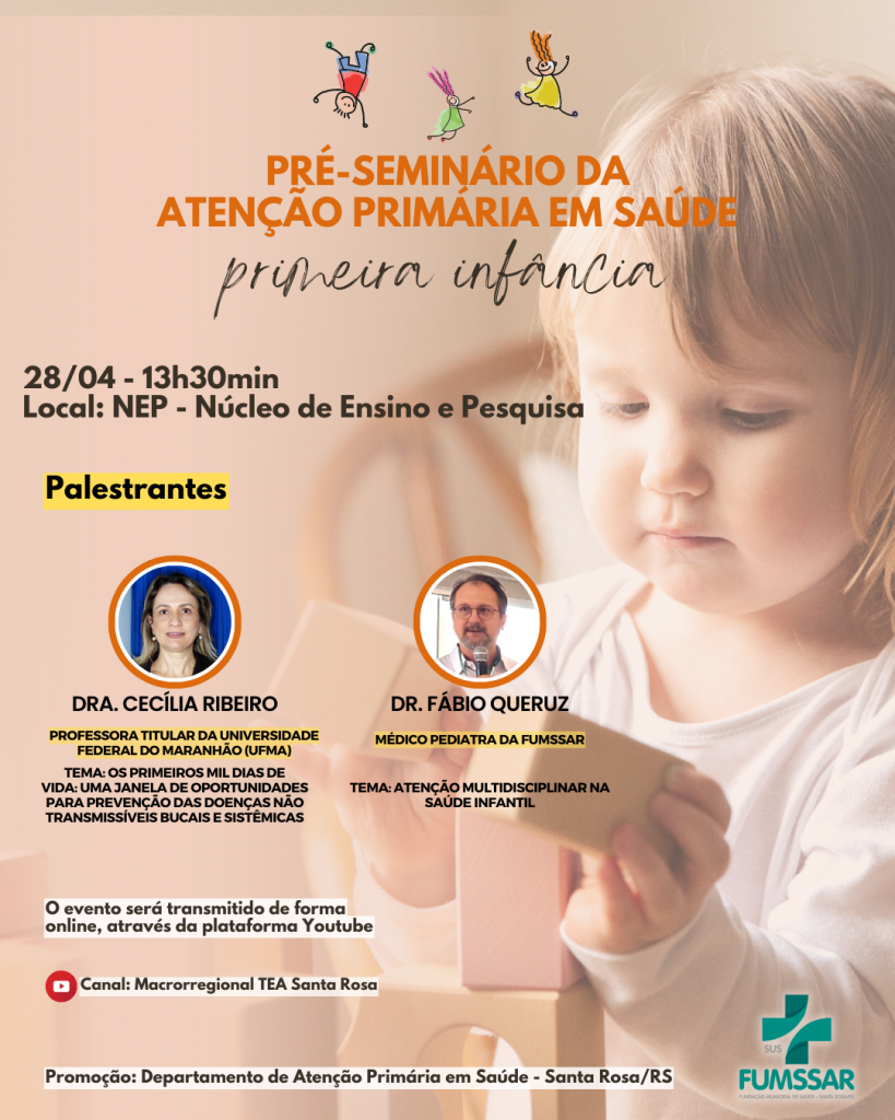 Notícias Pré-Seminário da Primeira Infância 28 de abril de 2023 https://www.youtube.com/live/xtNfkJEp2R8?feature=share Clique no link acima para acessar o conteúdo que será transmitido online Continue Reading Previous Ações do Programa Saúde na Escola acontecem na Rede Municipal de EnsinoNext Pré-Seminário da Primeira Infância foi realizado em Santa Rosa