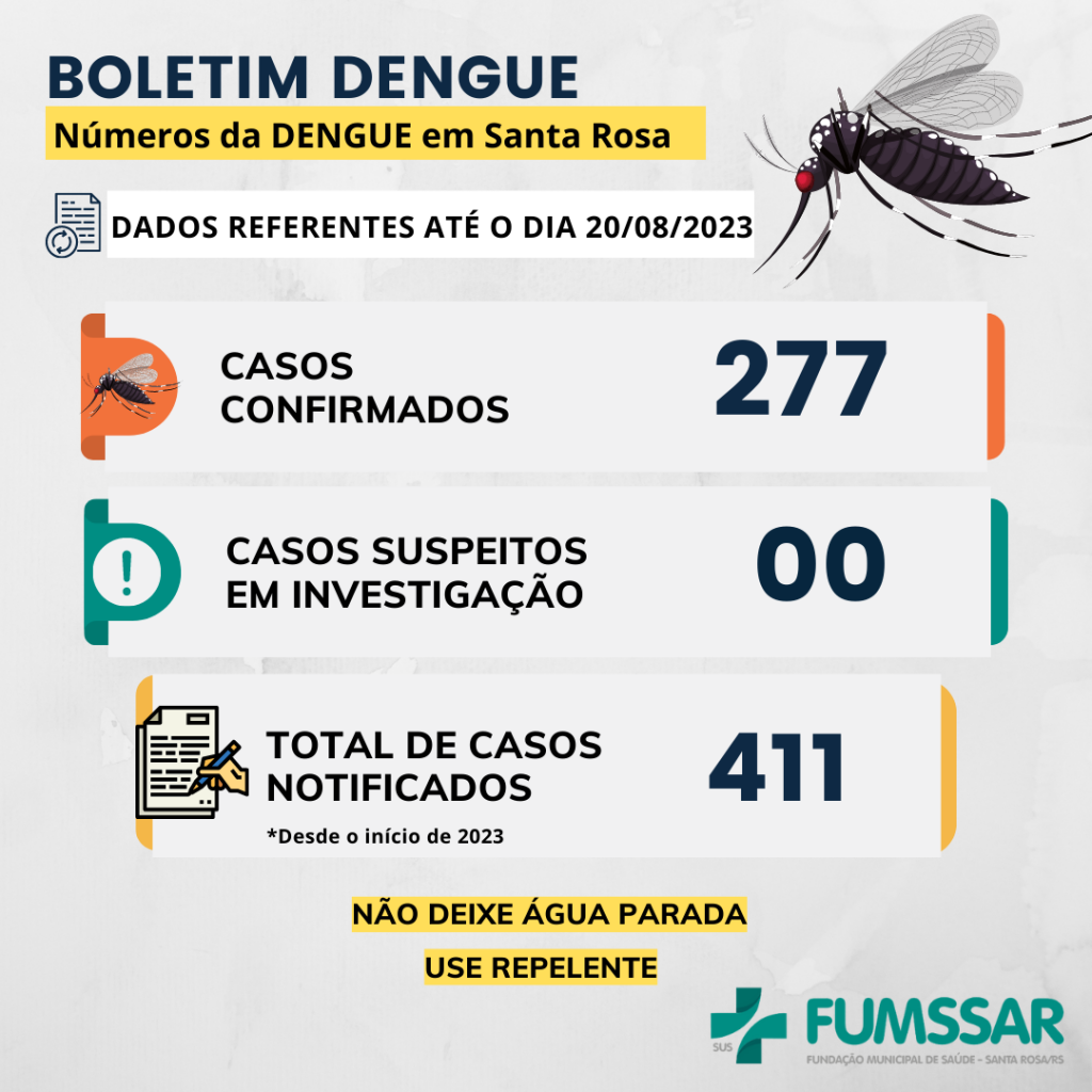 Notícias Boletim Dengue 21 de agosto de 2023 Continue Reading Previous Prefeitura e Senar realizam curso gratuito de pintura em tecidoNext Inscrições abertas para o Programa Movimenta