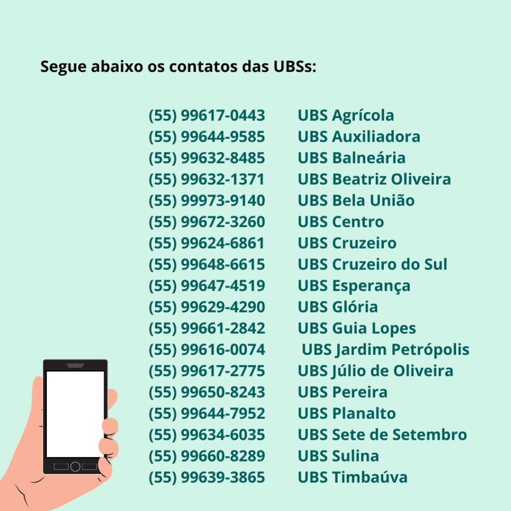 Notícias Telefones de Contato UBSs 5 de julho de 2024 Continue Reading Previous Site e redes sociais da Prefeitura de Santa Rosa serão adaptados para atender à legislação eleitoralNext Profissionais da FUMSSAR participam de formação sobre Reabilitação Intelectual