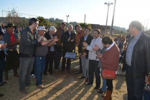 Durante o ato foi entregue oficialmente à família uma cópia da lei que denomina a praça de Rafael Santana Levandowski, um jovem morador da localidade, músico, que teve sua carreira e vida interrompida por um acidente.